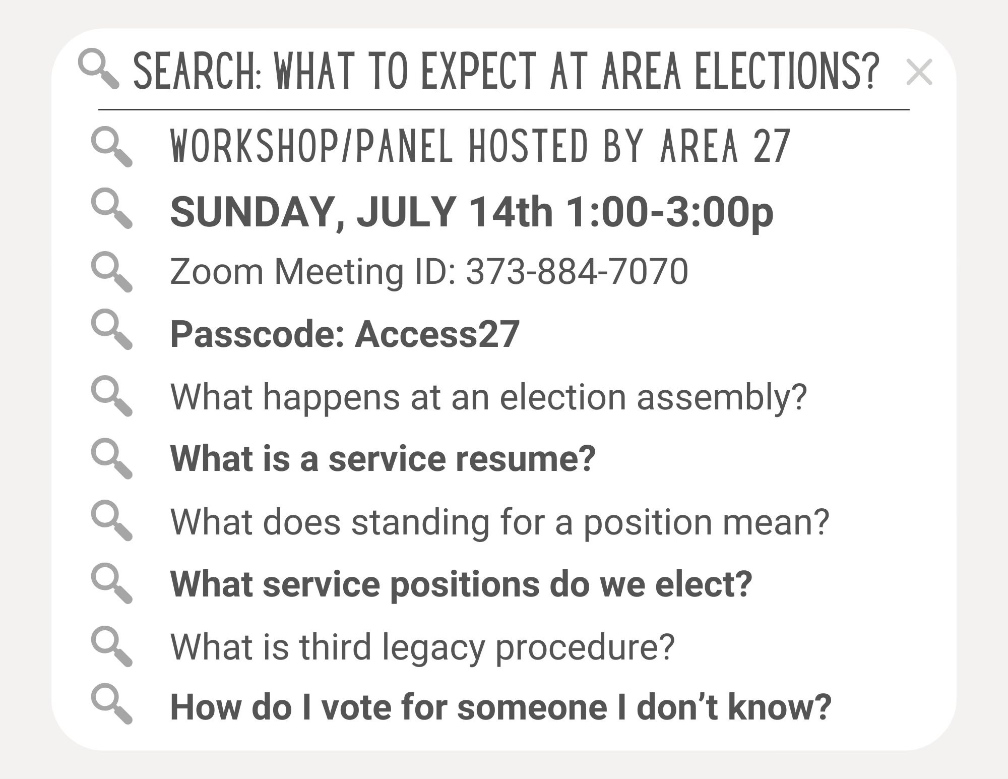 What to Expect at Area Elections Workshop